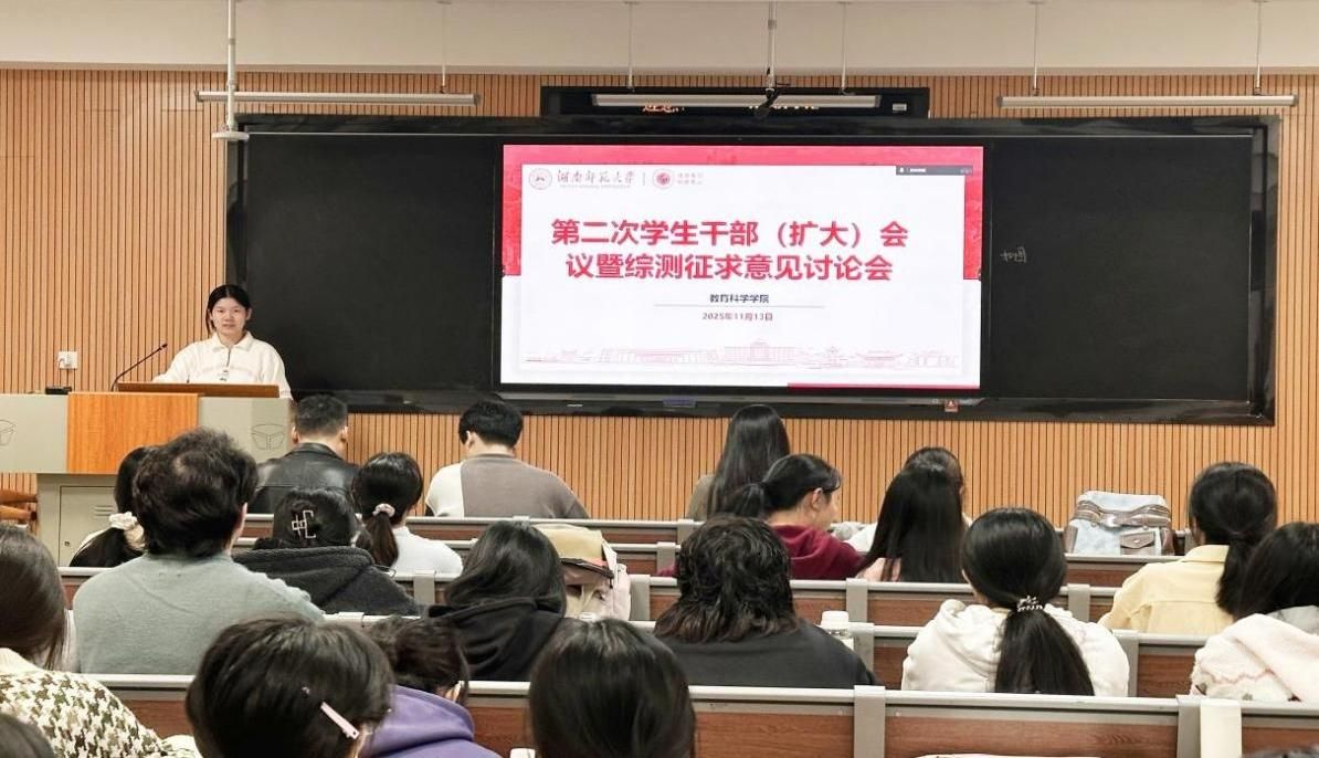 (通讯员 聂静涵 尹佳怡)为进一步优化学院综合素质测评(以下简称“综测”)工作,教育科学学院在前期广泛征求意见的基础上,于11月13日中午在教科院315教室召开本学期第二次学生干部(扩大)会议暨综测补充细则征求意见讨论会。会议由院团委书记、学生会指导老师谭梦主持,学工办全体老师参加。