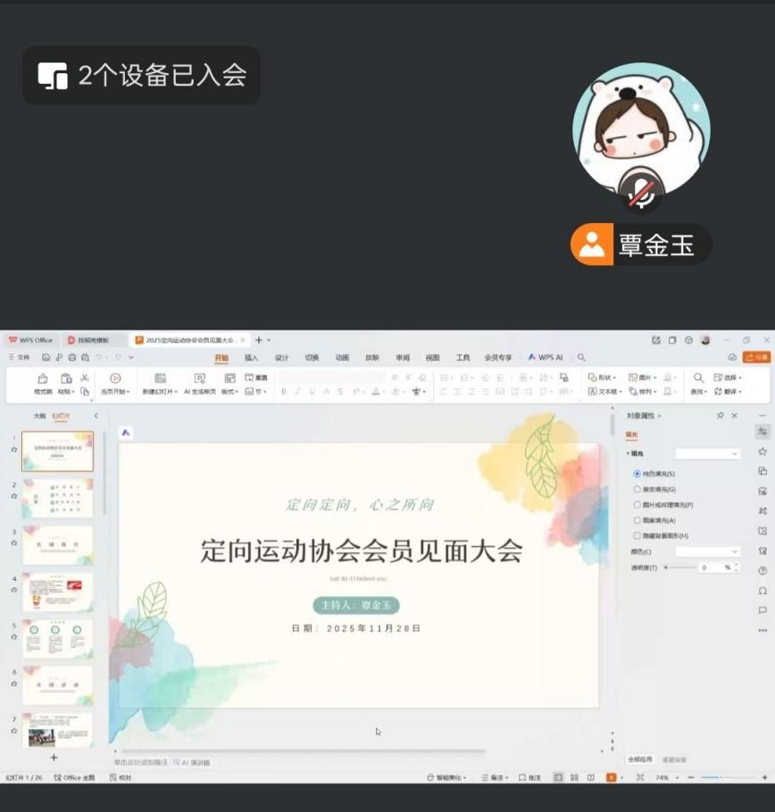 (通讯员 张玲榕 杨亮 )11月28日晚,教育科学学院定向运动协会以腾讯会议形式举办线上会员见面大会。此次大会由定向运动协会理事长覃金玉担任主持人,围绕社团简介、特色活动、监理事介绍及未来规划四大板块展开,旨在加深会员对协会的认知,凝聚社团发展合力。