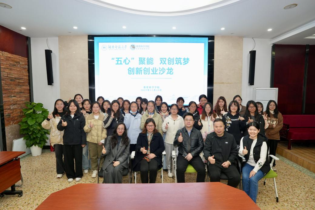 (通讯员 陈颖 刘梦娟)12月10日晚上,教育科学学院“‘五心’聚能 双创筑梦”创新创业沙龙于院七楼会议室举办,湖南师范大学创业导师代表湖南蓝宇心理健康管理咨询有限公司总经理毛湘玲、金职伟业集团有限公司总经理潘建明、新东方长沙学校校长兼湖南新东方文旅总经理王晓峰、新东方长沙学校创新业务部兼市场营销部总监张文妃受邀出席,张文妃担任主理人。