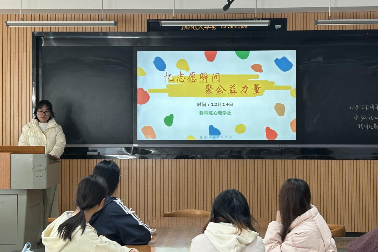 (通讯员 颜若楠 帅中琪)12月14日下午,为深入学习习近平总书记致中国志愿服务联合会第三届会员代表大会的贺信精神,深刻领会志愿服务的社会意义与当代青年的责任担当,教育科学学院心理学社举办以“忆志愿瞬间,聚公益力量”为主题的团日活动。