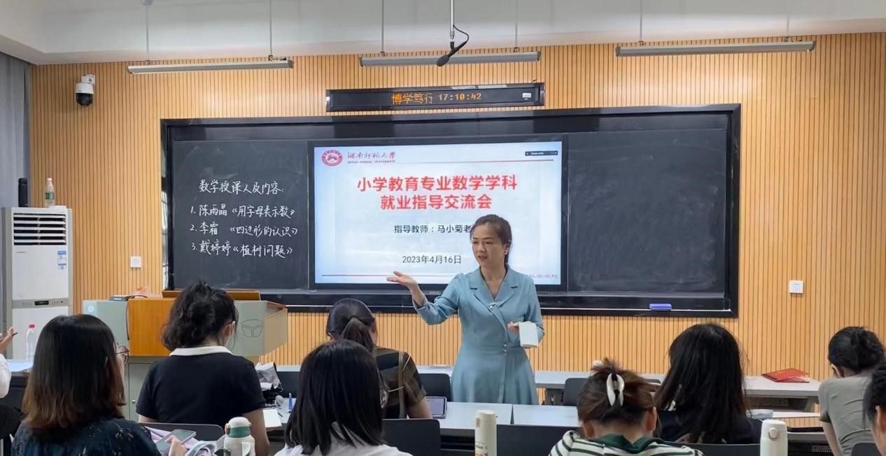 (通讯员 龙丹丹 尉莉银)2023年4月16日下午湖南省数学特级教师马小菊应我院邀约,在教科院214教室面向40余名研究生对教师应聘试讲事项做了详细地指导。马小菊老师是我校小学教育专业的实践型硕士生导师。参与活动的研究生来自21级、22级小学教育专业,刘德华教授主持本次的活动。
