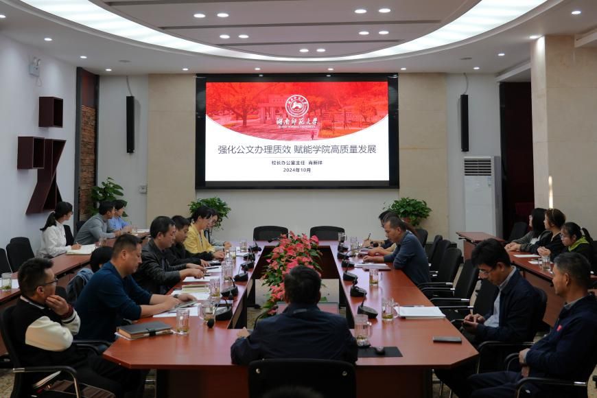(通讯员 李卓彬 张金敏)为进一步提升我院行政人员的文字表达能力,规范公文写作,提高办文水平和管理效率,10月25日下午,我院在七楼会议室举办“强化公文办理质效,赋能学院高质量发展”专题讲座。讲座由副院长赵亮主持,特邀校长办公室主任肖新祥担任主讲嘉宾,院长刘铁芳、党委书记向发意、校长办公室副主任欧阳文芳、院副处级专职组织员王赛波出席讲座。