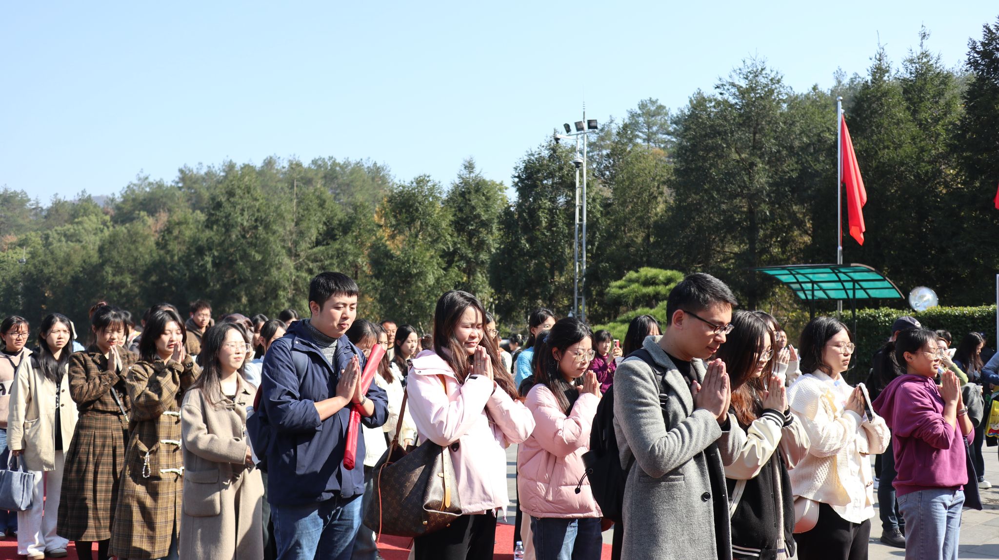 在铜像广场,全体党员排成三列纵队,缓缓走近毛主席铜像鞠躬行礼,表达了深切的缅怀和崇高的敬意。党员们胸前佩戴着党徽,重温入党誓词,坚定了入党初心和理想信念。