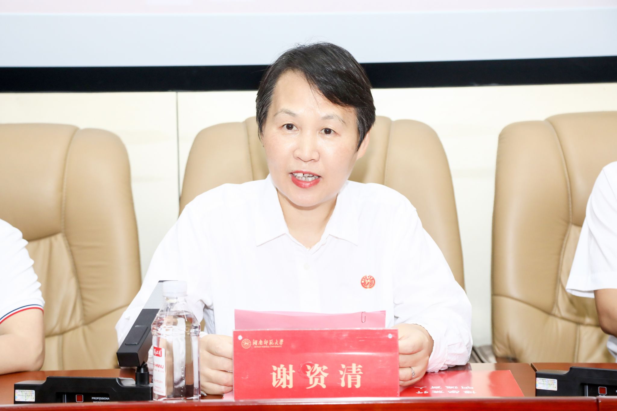 谢资清在致辞中回忆了福建之行参观闽南师范大学的见闻,提及两校合作的深厚基础与坚实情谊,并肯定了湖南师范大学教育科学学院成熟的人才培养体系与办学水准。她强调,中层干部作为连接学校决策与落地的“中流砥柱”,其专业素养、管理能力与担当精神直接关系到发展蓝图的实践成效。为此,她期望学员通过研修当好“三重角色”:以学习者姿态锤炼本领,以传播者身份深化校际合作,以践行者担当履职尽责。
