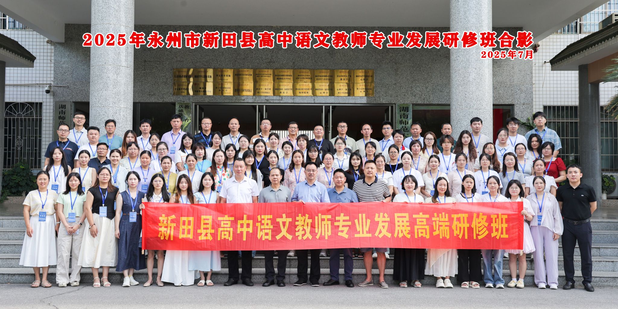 7月17日,由湖南师范大学教育科学学院承办的“2025年永州市新田县高中语文教师专业发展高端研修班”在学院101报告厅开班。新田县教育局党组成员、总督学肖石安,新田县一中工会主席谢顺军,新田县二中语文教研组长骆金鹏、学院副院长赵亮出席开班典礼,典礼由张绍军副教授主持。