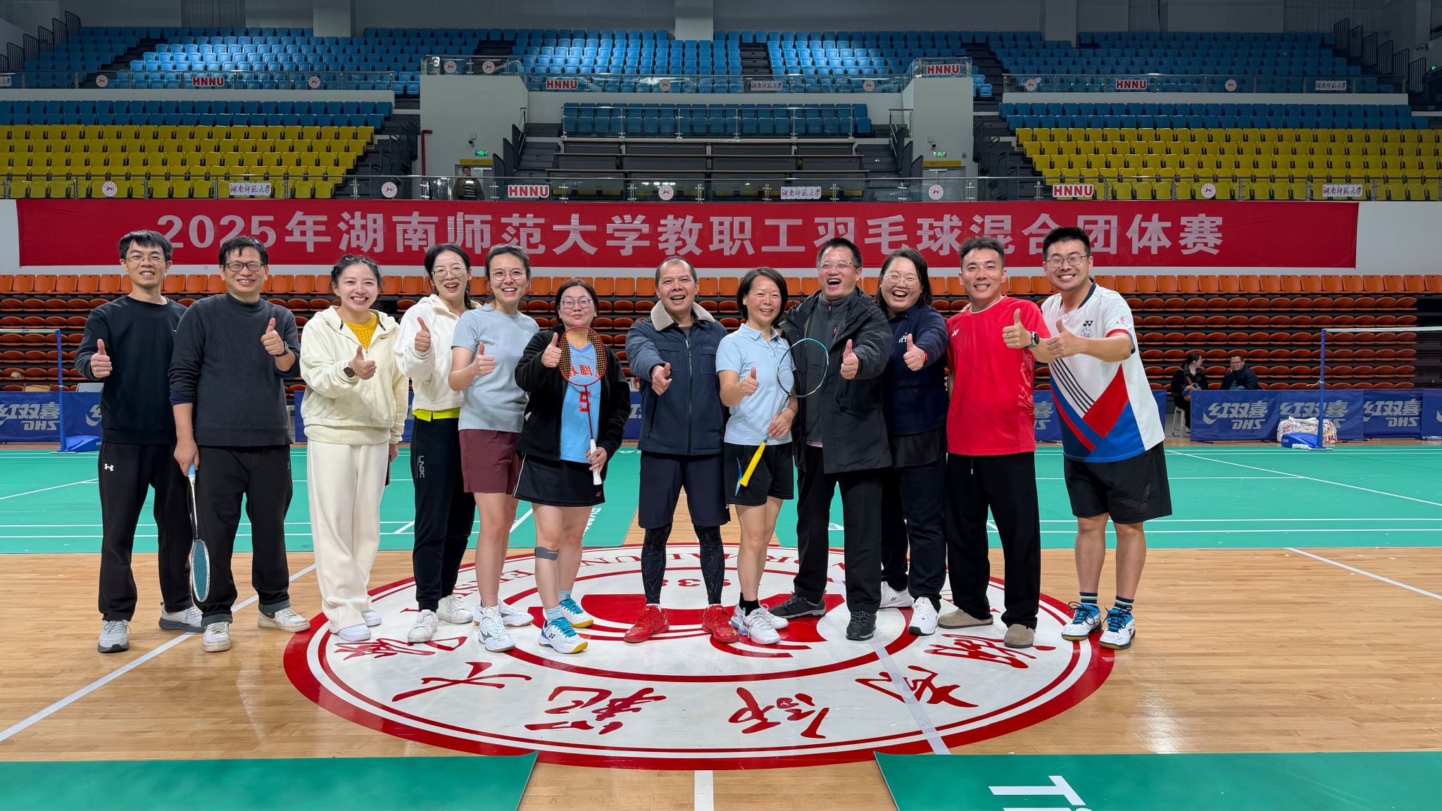 1121日至23日,“2025湖南师范大学教职工羽毛球混合团体赛”在江湾体育馆隆重举行。教育科学学院羽毛球队一路过关斩将,最终斩获第五名的优异成绩,用拼搏与汗水诠释了团队力量!