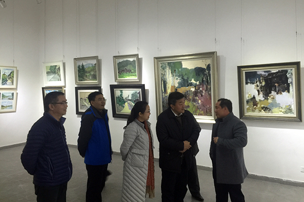 随后,李民和黄俊玲在长沙后湖文化艺术有限公司董事长赵荣军的陪同下,参观了插柳文化艺术园自开园以来部分师生创作的作品展,赵荣军对即将进行的插柳写生作品全省巡展方案和插柳文化艺术园的后期建设做了详细的介绍。李民表示,我校将按照三方协议的内容推进艺术园的运营和建设,希望后湖公司利用市、县两级给予的优惠政策,将后期建设好,造福插柳百姓和当地经济社会的发展。