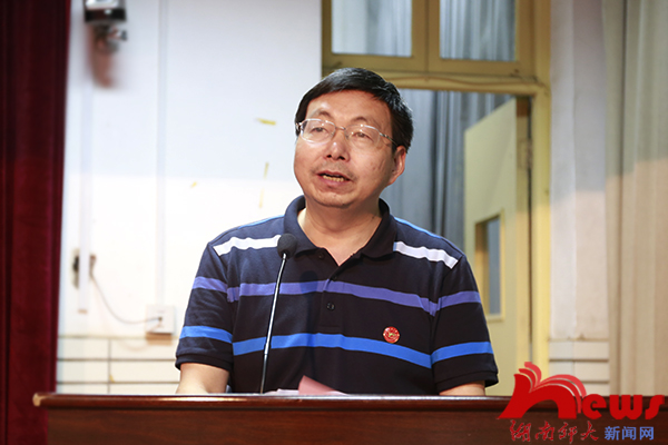 匡乐满强调,“最是书香能致远”,图书馆读书活动的开展发挥了重要的文化传播、文化育人作用,推进了我校的精神文明建设,功在当代,泽及未来。他表示,读书要从大一新生抓起,在暑假号召他们积极参与“一校一书”读书活动,营造浓郁的书香气氛;学校要积极推荐经典图书,编制我校专属的经典阅读书目,利用各类文化活动、纪念形式做好图书推荐工作;要从湖湘文化、校史文化入手,做好阅读推广,通过各种推广形式让我校学子更多、更广、更深地了解、传播和弘扬湖湘文化、校史文化。他希望“读书能成为我校师生共同的生活方式”。