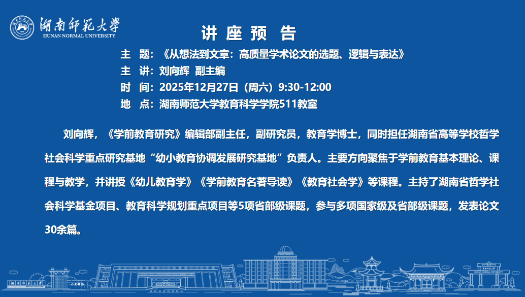 湖南师范大学第十二届第九期麓峰交叉科学论坛于教育科学学院成功召开