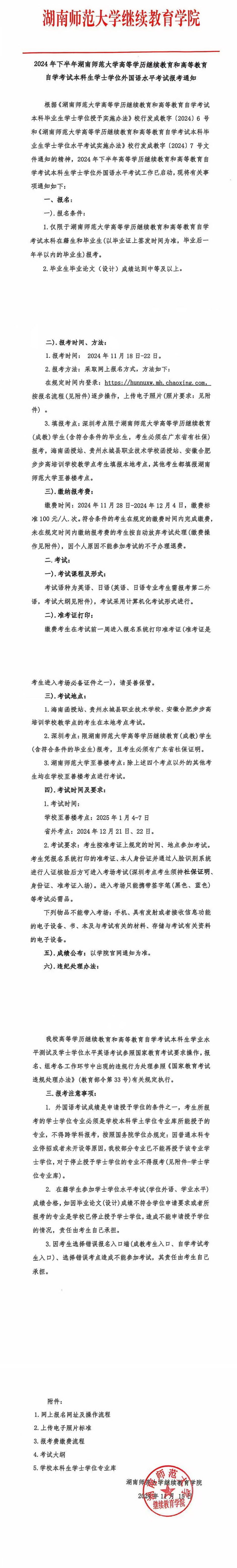 2024年下半年湖南师范大学高等学历继续教育和高等教育自学考试本科毕业生学士学位证申请与授予的通知