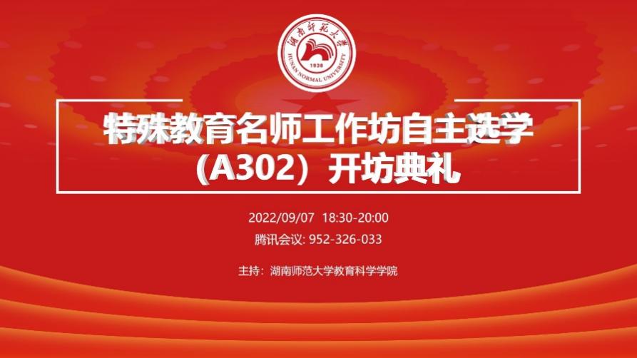 9月7日晚,2022年湖南省特殊教育名师工作坊自主选学(A302)开坊典礼在线上顺利举行,典礼由教育科学学院成教办主任杨铁林主持。教育科学学院院长刘铁芳教授、特殊教育系主任陈杰教授出席了典礼。参会的还有工作坊的管理人员及来自湖南省各地级市的150名特殊教育老师。