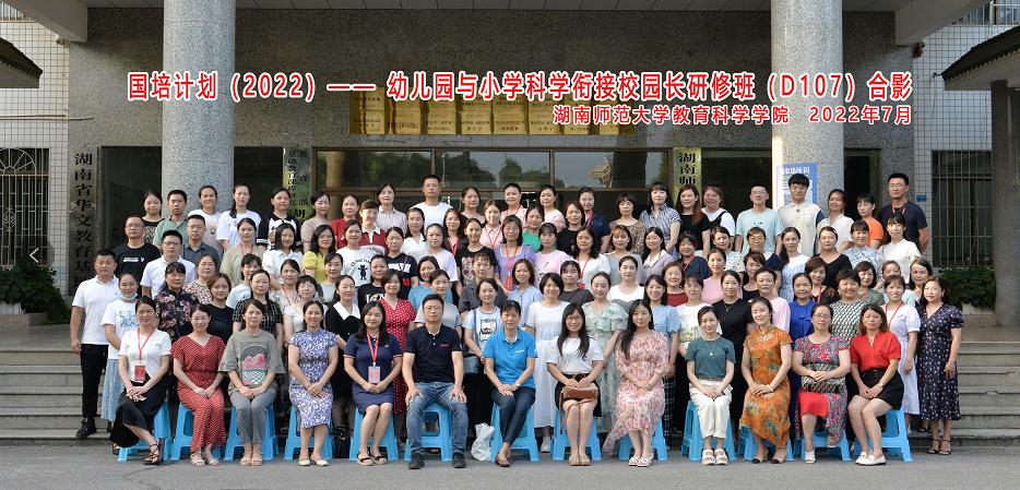 2022年7月18日下午,国培项目(2022)——幼儿园与小学科学衔接校园长研修班(D107)培训项目在湖南师范大学教育科学学院101教室顺利开班。湖南师范大学教育科学学院书记汪植英女士和学前教育系主任康丹副教授出席开班典礼,典礼由教育科学学院成教办主任杨铁林主持。