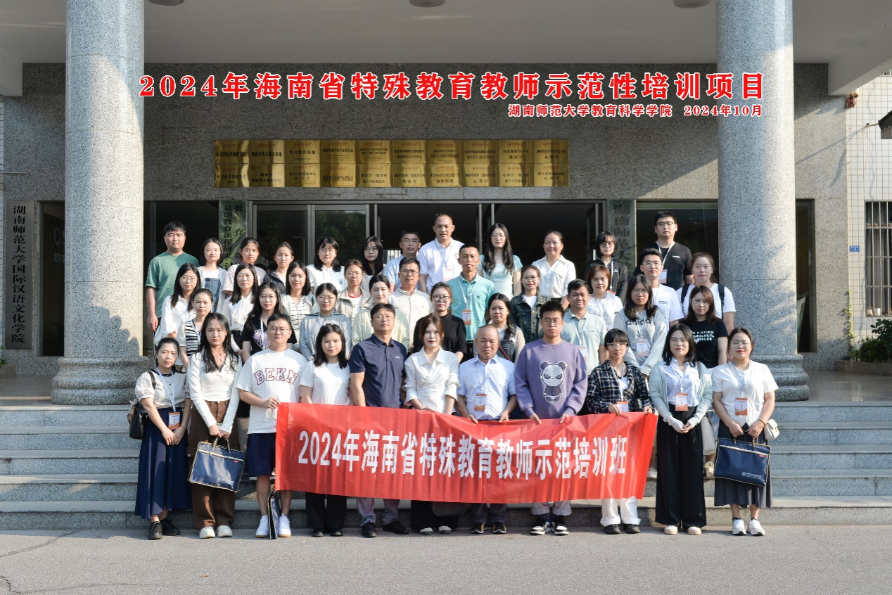 近日,海南省特殊教育教师示范性培训班在湖南师范大学教育科学学院顺利开班。琼台师范学院董文学,湖南师范大学教育科学学院院长刘铁芳、特殊教育系主任陈杰、长沙市特殊学校校长王磊、成教办主任杨铁林出席开班仪式。
