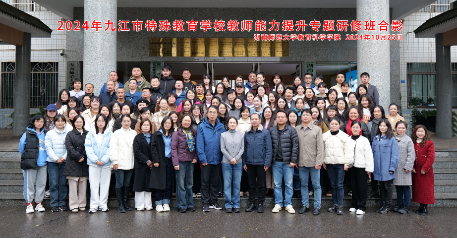 近日,九江市特殊教育学校教师能力提升专题研修班在湖南师范大学教育科学学院顺利开班。九江市特殊教育学校党总支书记乔子瑾、副校长周伟生、周玲,湖南师范大学教育科学学院副院长赵亮、特殊教育系主任陈杰、成教办主任杨铁林出席开班仪式。