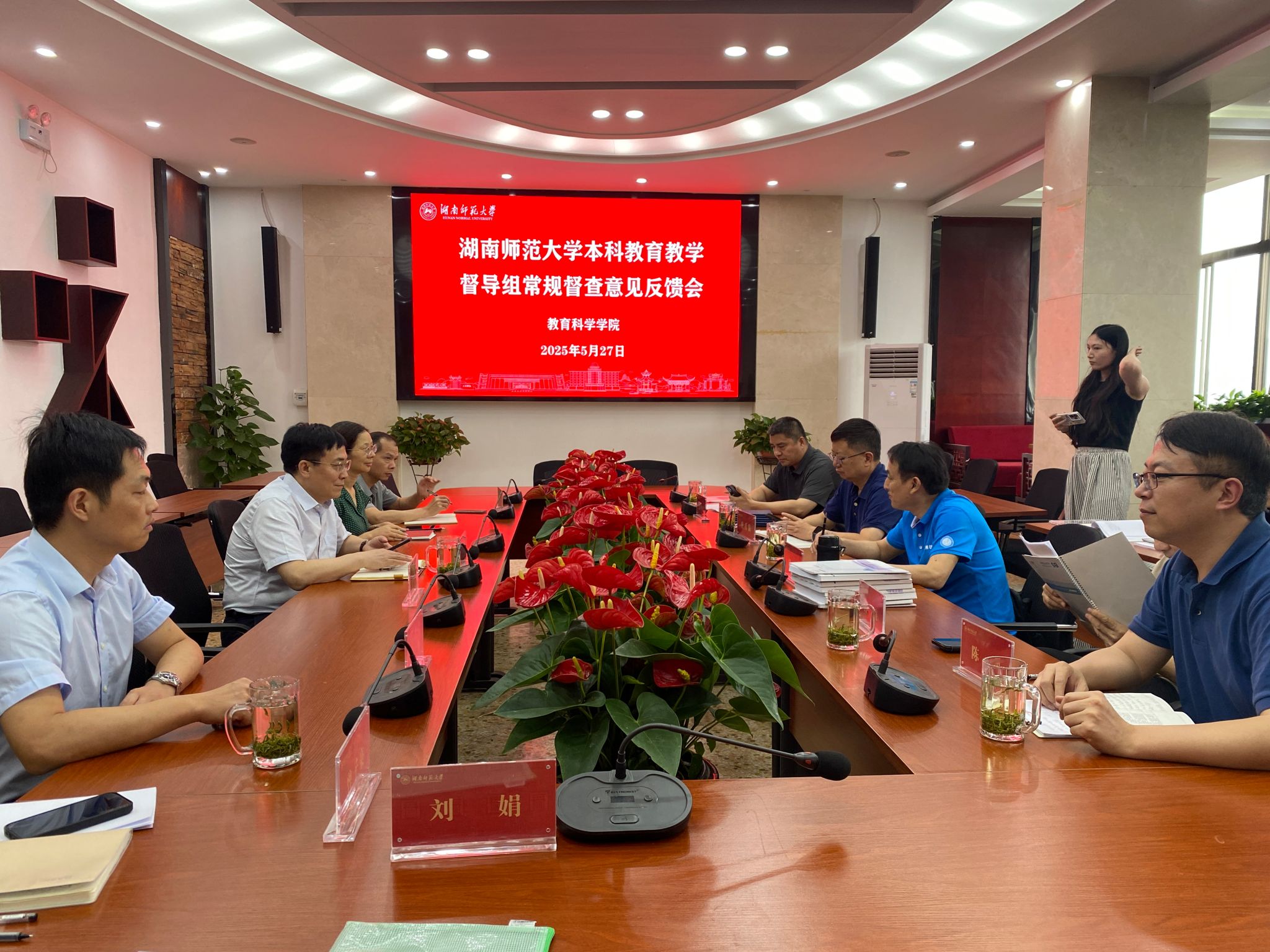 5月27日,湖南师范大学第八届教学督导委员会第四小组组长刘旭教授与督导组成员孙泉教授、唐勇强副教授、郭恒涛教授、陈刚教授等专家莅临教育科学学院,开展本科教育教学集中督查工作。学院党委书记向发意、副院长容中逵、副院长赵亮、组织员王赛波、相关专业负责人、部分骨干教师、学生代表、教务办工作人员参与。