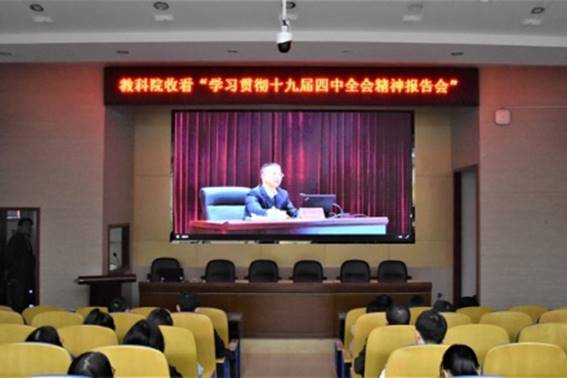 (通讯员 于抒含 童金宇 易芳莹)11月28日下午,学校举行了“学习贯彻党的十九届四中全会精神省委宣讲团报告会”。报告会的主会场设在学校国际学术报告厅,并在学校网站进行了同步直播。学院班子成员、部分学生和教师代表到主会场聆听报告,学院党委组织党员和入党积极分子在学院101报告厅收看了直播。