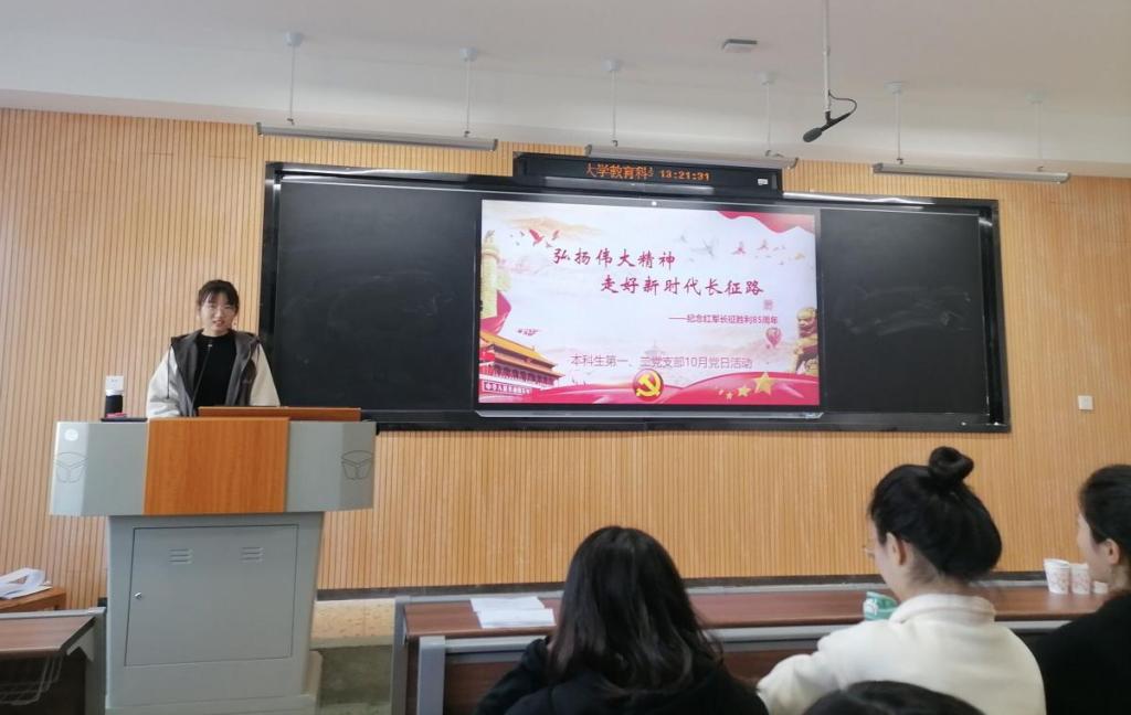 (通讯员 马欣 谭蓉)为纪念红军长征胜利85周年,铭记红军丰功伟绩,弘扬伟大长征精神,10月22日,教育科学学院本科生党支部在教科院315教室召开以“弘扬伟大精神,走好新时代长征路”为主题的党日活动。