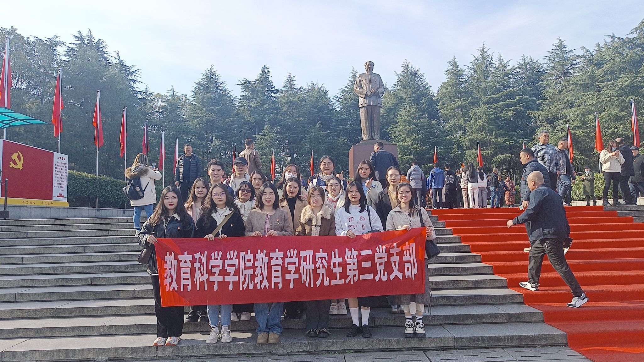 (通讯员 吴淼 董惠仪) 12月6日,教育学研究生第三党支部党员同志前往韶山,开展以“参观主席故里 汲取奋进力量”为主题的党日活动。2023年12月26日,是毛泽东同志诞辰130周年纪念日,值此之际,探寻伟人故里,汲取伟人力量,具有非凡的意义。
