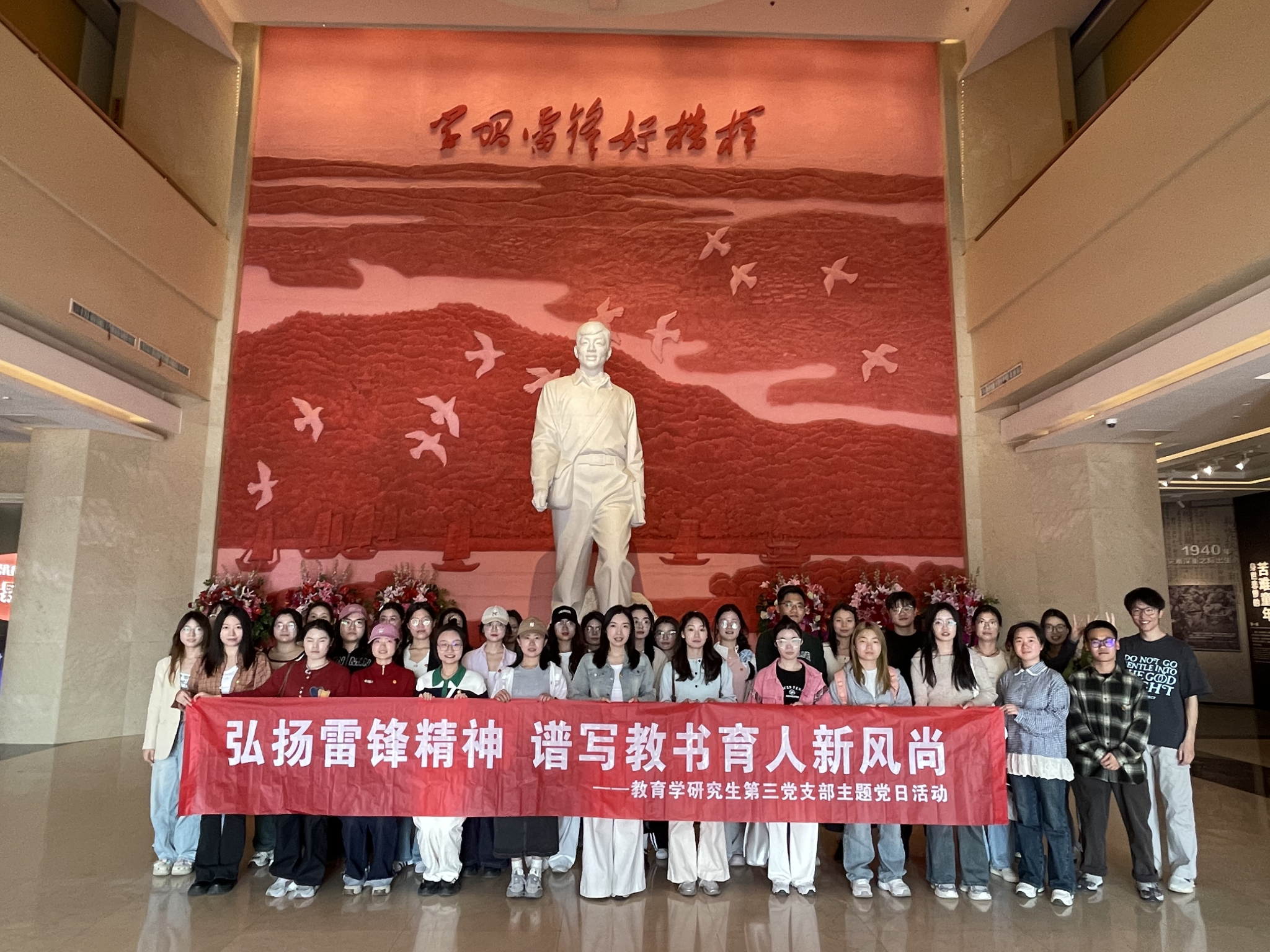 (通讯员 虞晓沁 张静帆)“弘扬雷锋精神,谱写教书育人新风尚”,3月25日教育科学学院教育学研究生第三党支部党员赴湖南雷锋纪念馆开展沉浸式主题党日活动。活动旨在通过雷锋故事我来讲、实地参观学习、互动体验与感悟分享,探索“理论学习+实地体验+专业实践”的多维模式,引导党员深入领悟雷锋精神内涵,将其融入个体教育实践,为新时代教书育人使命注入精神动力,谱写教书育人新风尚。