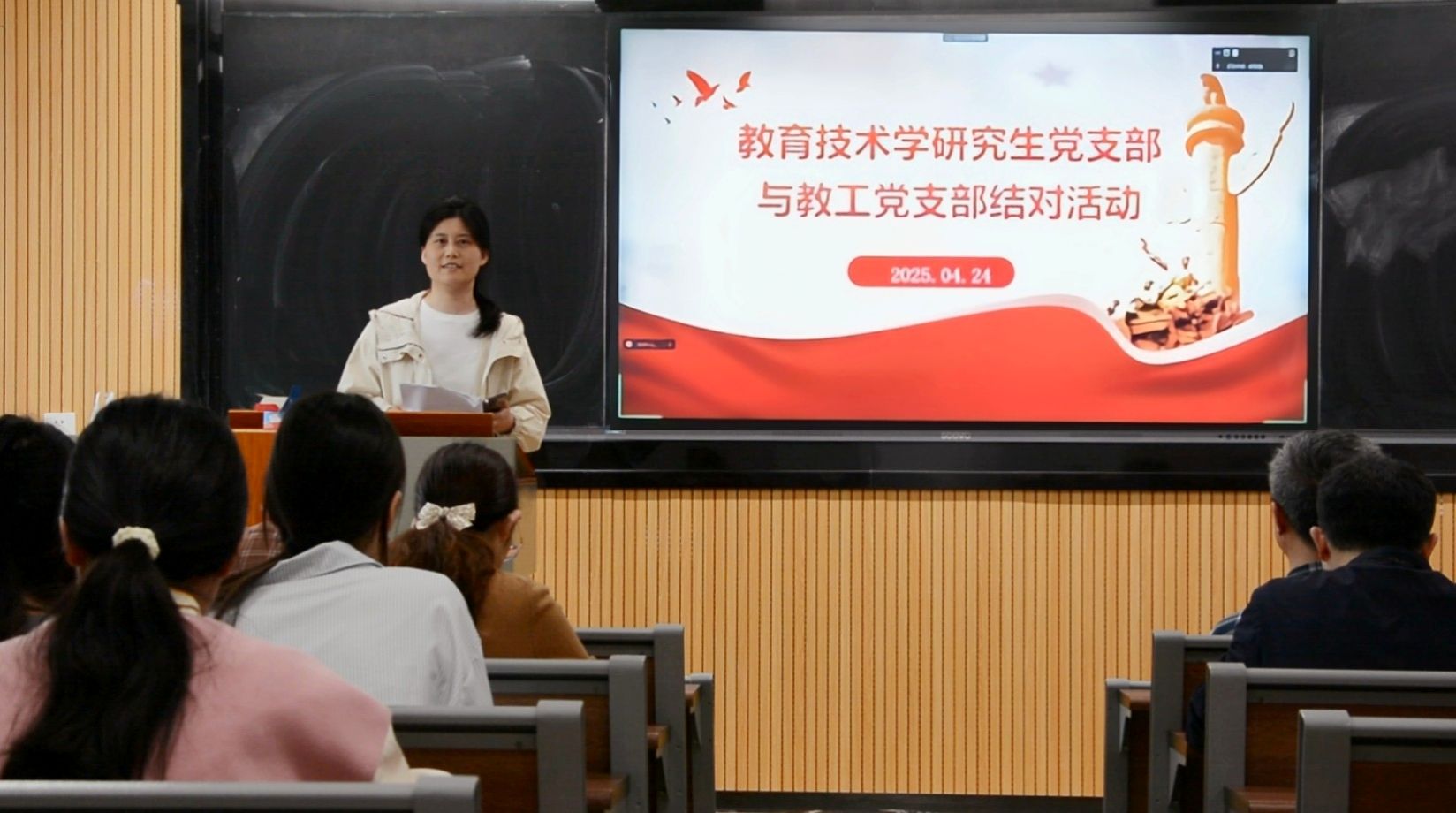 (通讯员 龙雅菁 李紫璇)4月24日,教育技术学系教工党支部和教育技术学研究生党支部开展结对共建主题党日活动,围绕深入贯彻中央八项规定精神学习教育,搭建师生学习交流平台,助力党员学业、就业与事业发展。学院专职组织员王赛波老师出席活动。