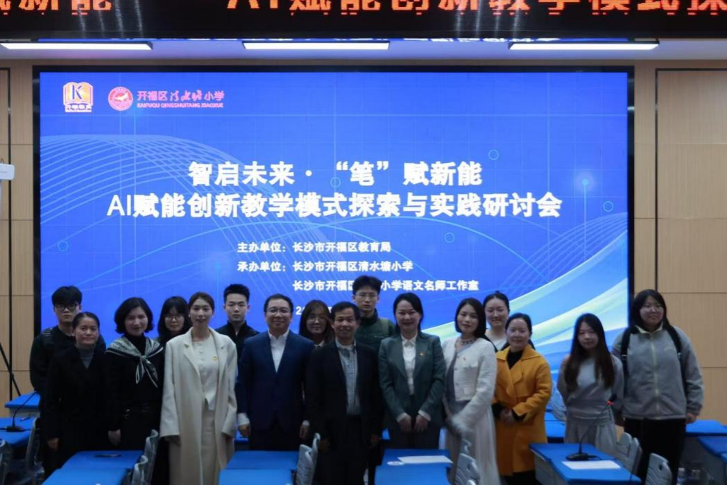 (通讯员 秦睿)3月21日上午,我院教育技术学系张青副教授携8位研究生,应邀参加开福区教育局主办、清水塘小学承办的“AI赋能语文创新教学模式探索与实践研讨会”。本次研讨会旨在探索人工智能技术在小学语文教育中的创新应用路径,聚焦教师数字素养提升、智慧课堂构建、个性化学习支持等核心议题。活动现场人员来自开福区教育局、开福区教科院、学科教研员、小学语文名师工作室成员、每个学校1-2名低年级语文老师,全区“纸笔课堂”试点校、数字化教育企业人士、“大湘西”网络联校等近千余人线上线下同步观摩小学语文数字化课堂教学、互动研讨。
