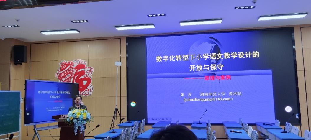 会议中,张青老师受邀做了《数字化转型下小学语文教学设计的开放与保守——原理与案例》专题讲座,探讨了数字化与AI对小学语文教师教书育人中的挑战、可能风险与突破路径,基于小学语文课程标准与核心素养的角度,张青老师较为深入地分析了AI在小学低年级、中年级、高年级三个阶段语文教学中的应用策略,特别分享了在AI背景下,数字化需要聚焦语文教学批判性思维、深度阅读、人文情感与民族文化的方向及其具体方法,关注AI技术在语文教学应用中情感、意境培育的重要性及其失落的可能性。
